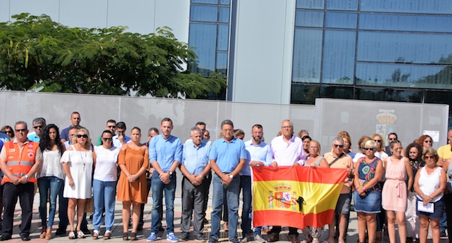 Concejales del Ayuntamiento de San Bartolomé de Tirajana, empleados y público en general han participado hoy en el acto simbólico celebrado en la explanada de acceso a las Oficinas Municipales de Maspalomas, en solidaridad con las víctimas del acto terrorista acaecido en Barcelona, informó un comunicado.