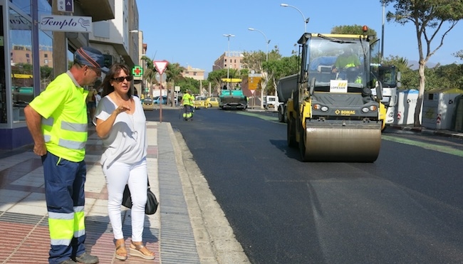 González añadió que “en la fase actual se están invirtiendo más de 300.000 euros que nos ha aportado el Cabildo de Gran Canaria a través del Plan de Cooperación. En las próximas fases también habrá aportación del propio Ayuntamiento, del Cabildo y del Gobierno de Canarias”. La alcaldesa aseguró que que “a las tareas de mantenimiento que se ejecutan durante todo el año en las distintas calles se le suma este proyecto de reasfaltado que deja las vías en perfecto estado, ganando así en seguridad los usuarios de vehículos y los peatones. De hecho, se está aprovechando para quitar los antiguos reductores de velocidad y se están elevando con alquitrán los pasos de peatones”.