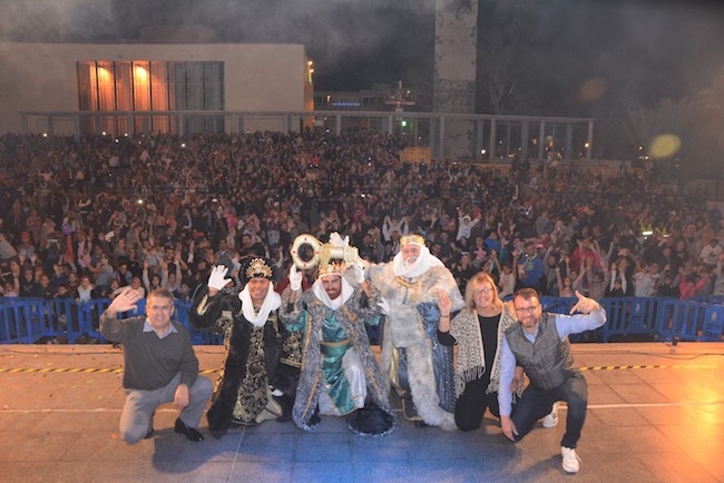 Casi un centenar de efectivos de seguridad (Policía Local, Policía Nacional, Protección Civil, Cruz Roja) acompañó al cortejo y se encargó del orden en la Plaza de San Fernando, donde cientos de niños se agolpaban esperando la llegada de los Reyes Magos. El comunicador Roberto Herrera se encargaba de entretener a los pequeños hasta que Melchor, Gaspar y Baltasar hicieron acto de presencia en el escenario, junto al alcalde Marco Aurelio Pérez Sánchez, la teniente de alcalde Elena Álamo Vega y el concejal José Carlos Álamo Ojeda.