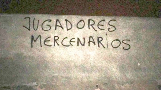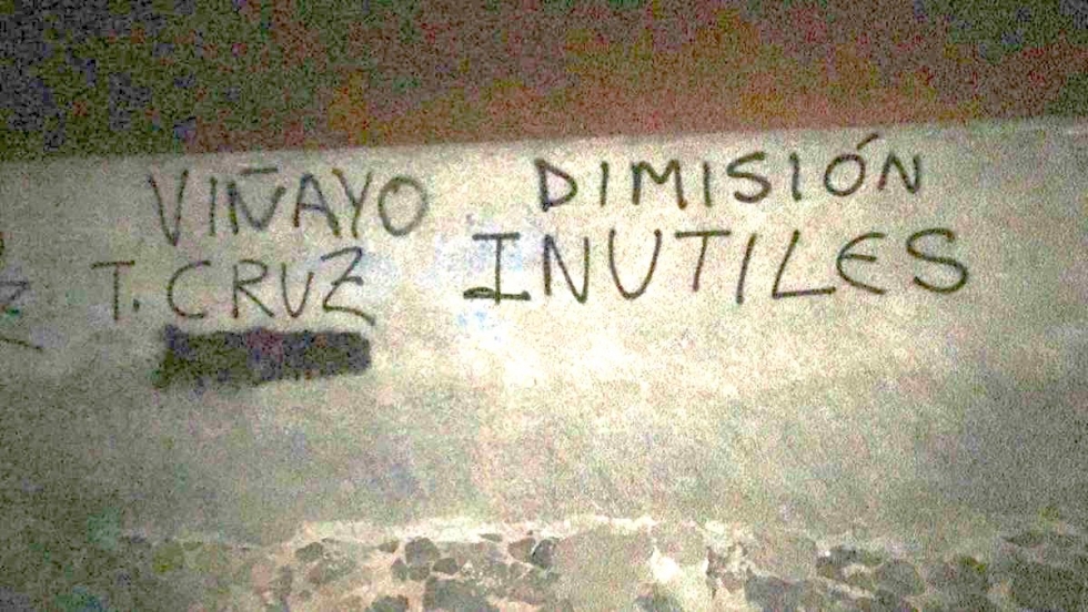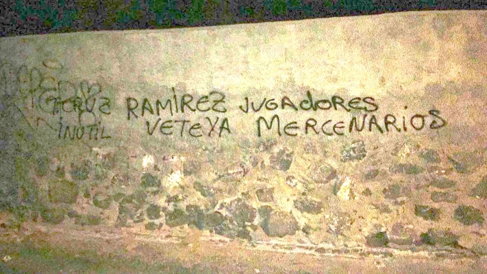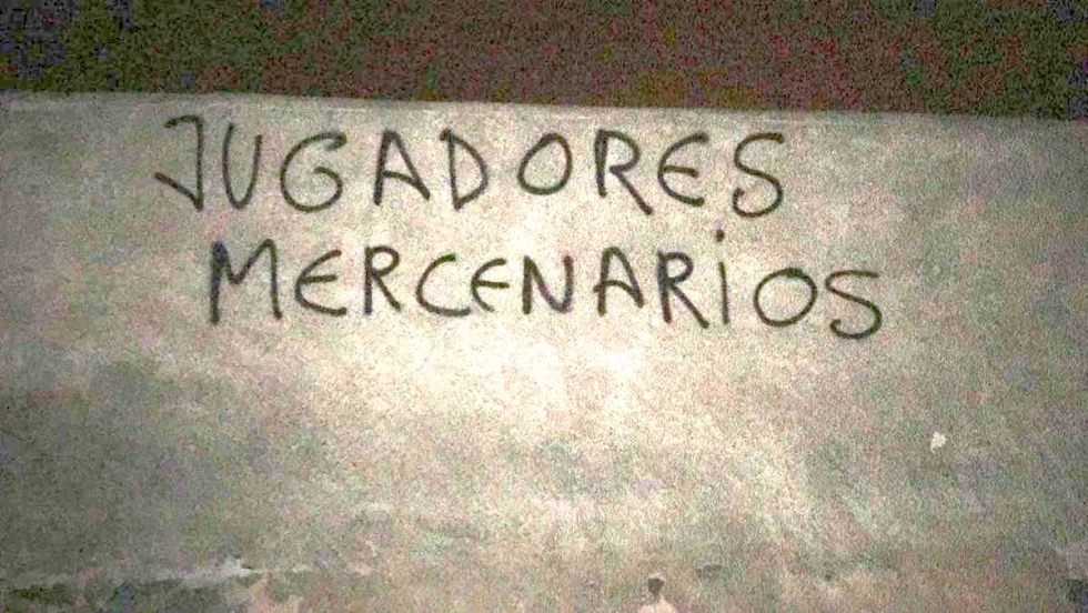 Menudo ataque de ira el de este lunático, fanático de la Unión Deportiva Las Palmas. El equipo del sufrimiento ya no lo puede hacer peor, y así todo lo que rodea a su presidente, Miguel Ángel Ramírez está por los suelos. Desde el sur, el malestar de algún sufridor destapó su rabia con pintadas en la zona de El Hornillo, como nos cuenta e ilustra con fotos un lector. Al presidente lo invita a marcharse, a los jugadores los tilda de mercenarios y al resto los trata de inútiles. Comprensible la frustración pero no las formas.