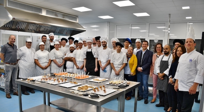 Tras la reunión celebrada en las oficinas municipales de Arguineguín, la comitiva se desplazó al IES Arguineguín donde charlaron con los alumnos del ciclo de Formación Profesional de 'Cocina y Gastronomía' y donde pudieron conocer las recientemente estrenadas instalaciones del nuevo taller de pastelería y panadería. La adaptación de la infraestructura de estas instalaciones han sido financiadas con unos 70.000 euros por parte de la Consejería de Educación del Gobierno de Canarias, mientras que el Ayuntamiento de Mogán ha aportado otros 70.000 euros para dotar al taller del mobiliario, menaje, maquinaria y equipamiento necesarios.