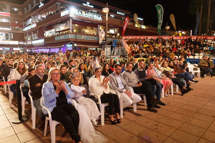 La Gala de la Reina Infantil reunió a cientos de niños y familias al completo en el centro comercial Yumbo que disfrutaron de la magia y diversión del cuento teatral protagonizado por Capi, el Bufón torpe y la caprichosa Reina Madre, así como de la alegría y bailes de 13 niñas que desfilaron con ilusión sus trajes carnavaleros.
