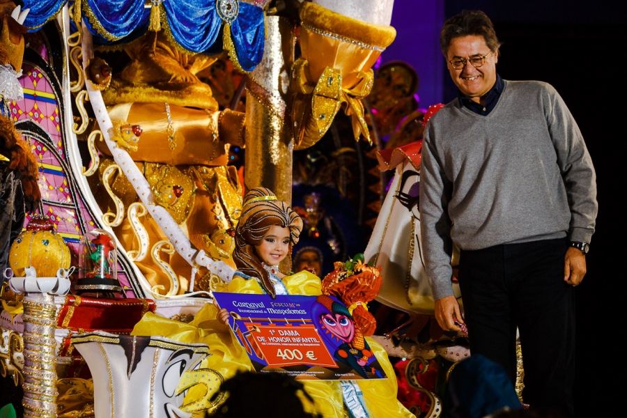 El jurado otorgó el título de Primera Dama de Honor a Jennifer de Filippis Monforte, con la fantasía “Mi cuento…lo cuento a mi manera”, de los diseñadores Rafael Deníz García y Rosa Mª Montesdeoca Almeida, en representación del Centro de Ocio Diver Play & Animación.com.