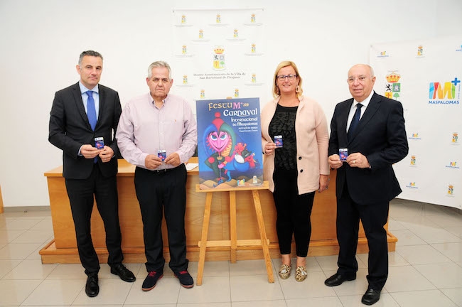 Con ese objetivo, la alcaldesa accidental Elena Álamo Vega; el consejero de Transportes del Cabildo, Francisco Trujillo Marrero; el concejal de Transportes, Pablo González Quintana, y el director general de Global, Víctor Quintana Hernández, han presentado este martes el convenio de colaboración que se ha  acordado para bonificar a los usuarios del transporte interurbano con un descuento del 40% en la compra de la tarjeta especial de ida y vuelta para el Carnaval de Maspalomas.
