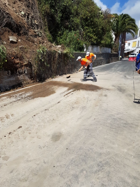 La retirada de esos desmoronamientos y la limpieza total de la vía la acometieron los operarios del Servicio municipal de Vías y Obras del Ayuntamiento de San Bartolomé de Tirajana apoyados por un camión y un tractor municipales.