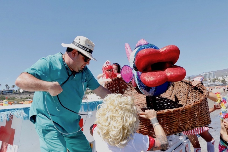 La rápida actuación del servicio de salud del Carnaval Internacional de Maspalomas, una comitiva importante de carnavaleros apoyándola y un par de descargas eléctricas hicieron volver en sí al icono de las fiestas, que fue urgentemente trasladada por la orilla de la playa hasta el hospitalito de las carnestolendas en el Centro Comercial Anexo II de Playa del Inglés.