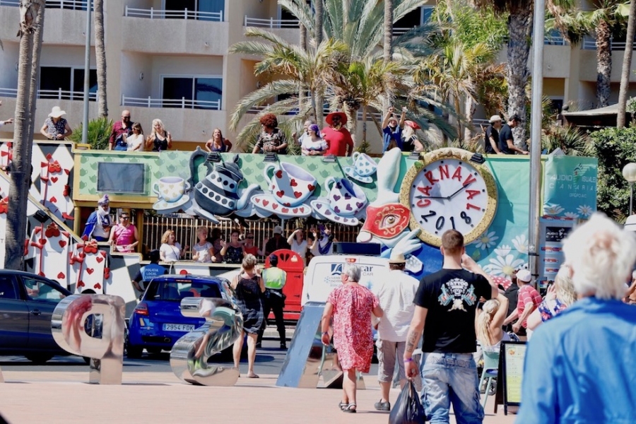 El Día del Turista arrancó con el ritmo de la Carroza Anunciadora, en un recorrido por las principales calles de la zona turística desde el Mercado Municipal a las 11 de la mañana, animando a los turistas a sumarse a la gran fiesta del Carnaval Internacional. Durante el traslado de la Sardina medieval, miles de visitantes han participado del desfile, envuelto en baile, ritmo y alegría, que muchos inmortalizaron con sus teléfonos móviles a lo largo del trayecto.