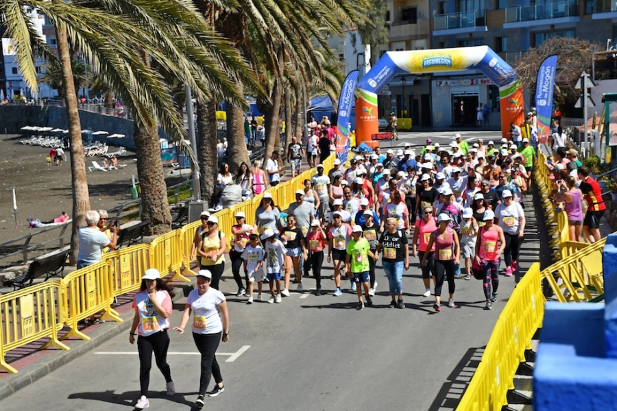 571 personas participaron en la Carrera Popular, en la que competieron 147 corredores en la distancia de 10 kilómetros y 180 corredores en la distancia de 5 kilómetros. Además, 244 niños y jóvenes participaron en las diferentes distancias de las carreras infantiles. A los participantes en la prueba se sumaron los participantes en la Caminata Solidaria por la Igualdad, cuya recaudación ha sido destinada al Colectivó Gamá, y cientos de acompañantes, vecinos, turistas y gran parte del grupo de gobierno del Ayuntamiento de Mogán, que se unieron a la fiesta deportiva bajo un espléndido sol en las calles de Arguineguín.