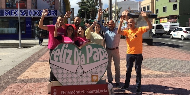 La campaña del Día del Padre, que cuenta con la colaboración de la Asociación de Comerciantes e Industriales de Vecindario (Ascoive), ha vuelto a sacar a la calle el corazón a modo de ‘photocall’, que ha paseado por diferentes zonas de la Avenida de Canarias, desde Doctoral hasta Balos, y que ha estado acompañado por una animación de baile a cargo de la academia Exprésate.