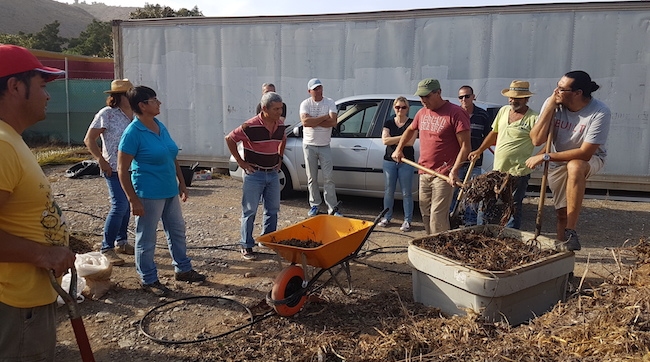 Durante las cuatro intensas horas de formación teórica, Afonso Martín instruyó a los participantes acerca del proceso de certificación de la producción ecológica; la transformación del suelo mediante fertilización orgánica, uso de abonos en verde y el compostaje de residuos.