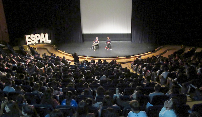 Durante la mañana Ana Tijoux e Iván Prado, de la organización Pallasos en Rebeldía, han participado en la última actividad de EducaESPAL en el Teatro Víctor Jara, en el que cerca de 500 jóvenes de diferentes centros de Secundaria han hecho de periodistas en una gran rueda de prensa en la que los estudiantes se interesaron por la defensa de la justicia y de los Derechos Humanos a través del arte y el humor.