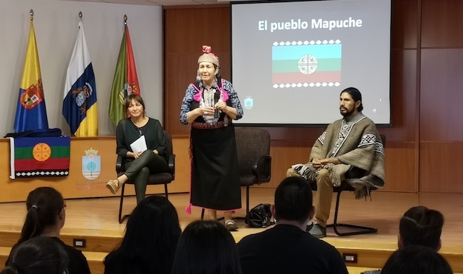 Los líderes del pueblo mapuche Juana Calfunao y Gerardo Chihuaihuén vivieron este viernes un encuentro con más de medio centenar de alumnos y alumnas de los centros de Secundaria Doctoral y José Zerpa, a los que expusieron la amenaza en la que vive esta comunidad indígena compuesta por tres millones de personas de esta cultura que habitan en territorios localizados en la zona sur de Chile y Argentina.