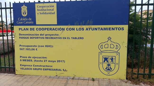 Uno de nuestros 7.500 lectores diarios nos pide si “por favor” le publicamos su queja. Faltaría más. En su escrito explica que, como vecino y contribuyente le gustaría saber: ¿A qué espera el Ayuntamiento para abrir el parque recreativo y deportivo de El Tablero? Está situado en la calle Manuel Pestana Quintana ¿Cuál es el problema? Son muchos los niños y padres del barrio que se hacen la pregunta día tras día. Lleva meses acabado (no hay movimiento de máquinas ni obreros) y como se ve en el cartel, el plazo de ejecución era hasta el 27 de mayo de 2017. Más de un año después, ¡sigue cerrado! A los responsables: “pónganse las pilas y abran el parque de una vez”. Según el cartel la obra es del Cabildo de Gran Canaria, por lo que suponemos será esta institución quien se tendrá que coordinar con el Ayuntamiento para proceder a la apertura (esto último lo añadimos nosotros).