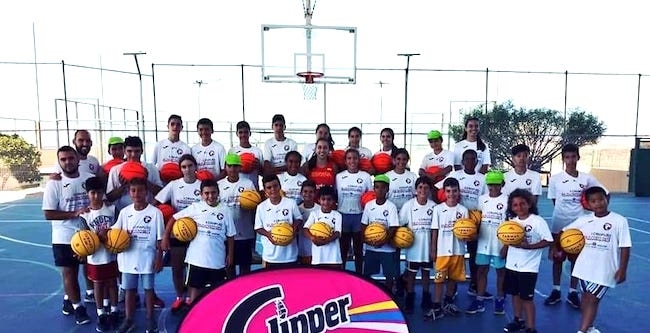 La jugadora canaria pasó una mañana muy divertida y jugó varios 1x1 con los alumnos del Sport Campus del Colegio Arenas Sur, en total 40 alumnos que disfrutaron con el clinir organizado en colaboración con el C.D San Bartolomé de Tirajana.