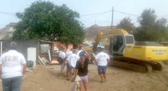 La empresa Desokupa, especializada, mediante la amedrentación, en el desalojo de viviendas, ha derribado esta semana varias chabolas situadas en la playa de Tauro, en concreto en la zona trasera del restaurante Vistamar.