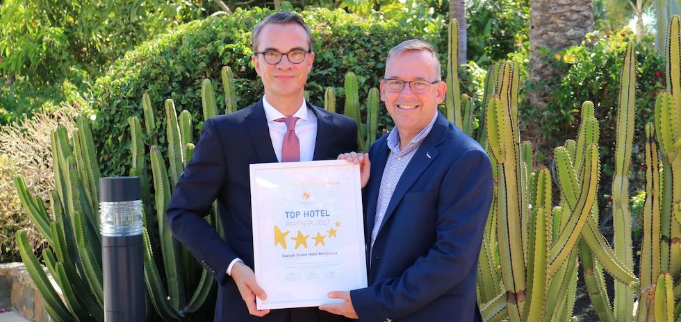 Los tres hoteles de Gran Canaria Seaside Grand Hotel Residencia, Seaside Palm Beach y Seaside Sandy Beach y el hotel de Lanzarote, Los Jameos Playa han recibido el premio “Top Hotel Partner 2018” del touroperador alemán Schauinsland Reisen, por su compromiso de calidad y servicio al cliente, como puntos de especial importancia.