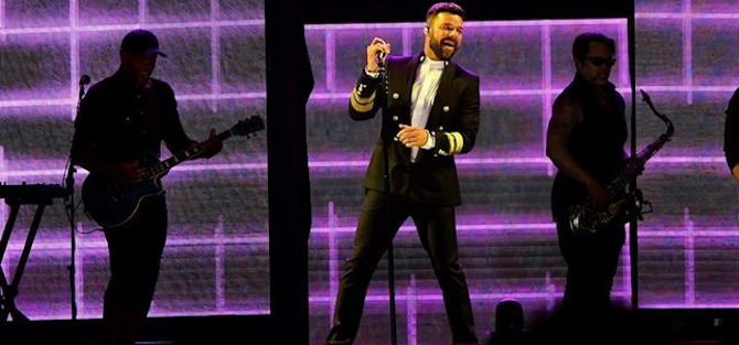 El repaso a la trayectoria musical del ganador de dos premios Grammy, cuatro Grammys latinos, ocho MTV, ocho World Music Awards, entre otros galardones, alabó "como se baila aquí en Canarias" subiendo a personas del público al escenario con "She bangs", que desde hace más de una década es clásico de la fiesta internacional.