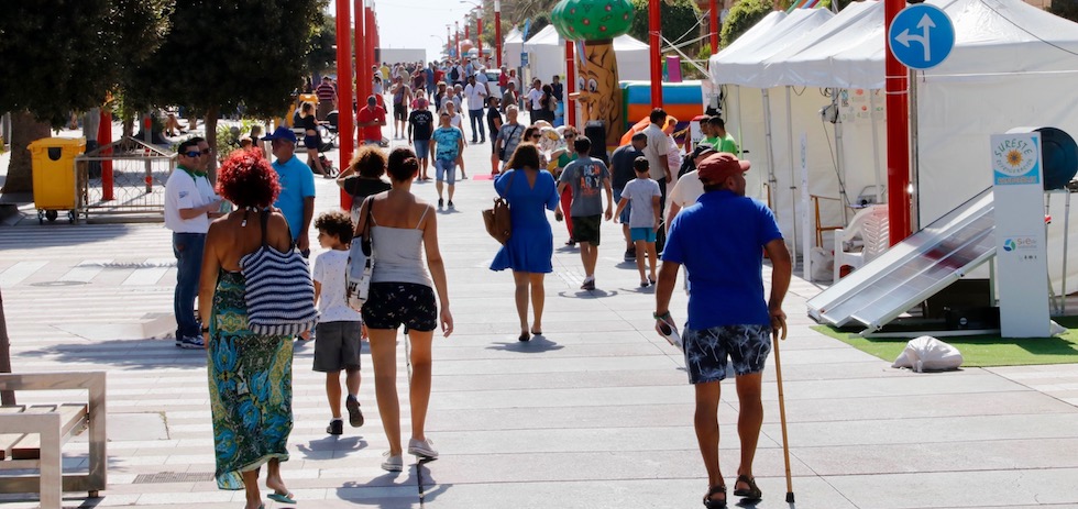 El presidente de la Mancomunidad del Sureste y alcalde de Agüimes, Óscar Hernández, junto a los vicepresidentes de la institución y alcaldes de Santa Lucía de Tirajana e Ingenio, Dunia González y Juan Díaz, respectivamente, ha realizado la apertura de la Feria del Sol en su quinta edición con la visita a cada uno de los 17 expositores. El marco elegido este año ha sido la avenida Polizón en la playa de Arinaga de Agüimes.