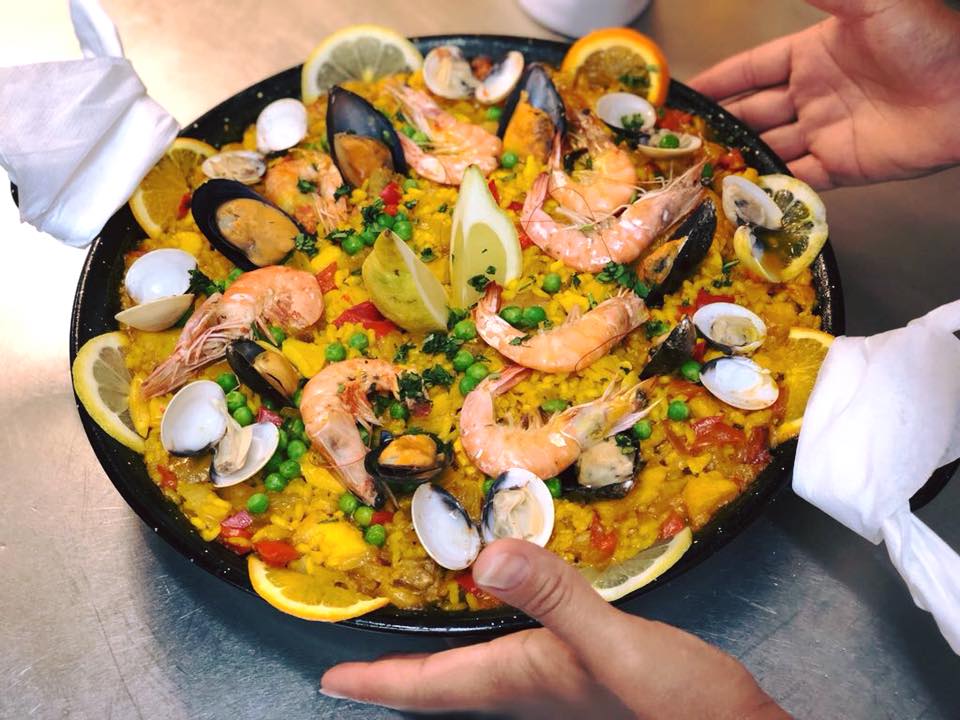 Entre los suculentos platos que se pueden degustar se encuentran el Carpaccio de solomillo, Gofio escaldado, Chupa Chups de pollo, Strogonoff, Paella mixta o Salmón al horno en hoja de platanera.
