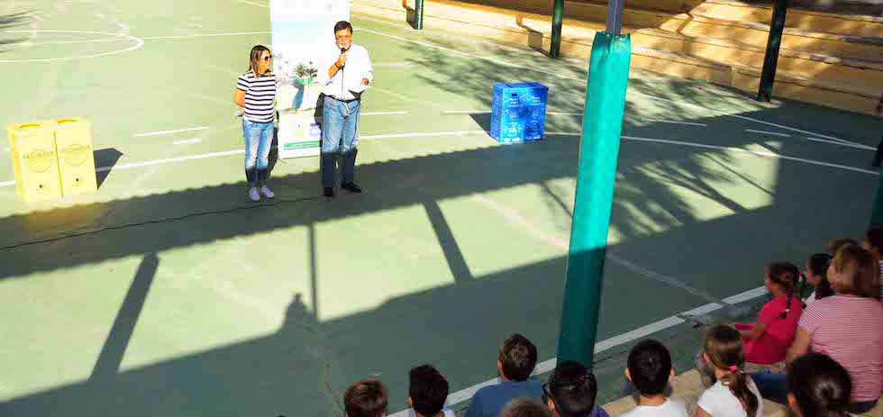 Este viernes fue el turno del CEIP Alcalde Marcial Franco, al que se dotó de cincuenta contenedores (25 azules y 25 amarillos) de 60 litros, para reciclar papel y plástico, que serán colocados en las aulas.