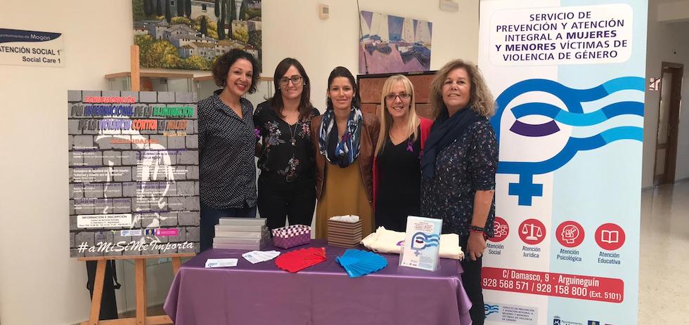Por su parte, el Ayuntamiento de Mogán ha facilitado un espacio con personal municipal del Servicio de Prevención y Atención Integral a Mujeres y Menores Víctimas de Violencia de Género. La edil ha querido recordar que “estamos diariamente disponibles para atender cualquier situación de violencia, para luchar contra esta lacra social”.