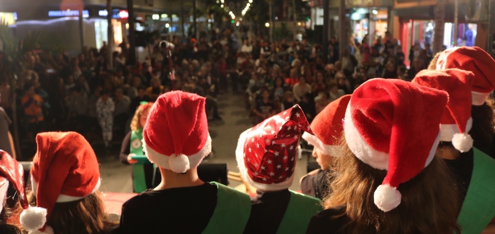 El encendido del alumbrado de las guirnaldas, que se celebró la noche de este jueves en la zona peatonal de la Avenida de Canarias, abre el programa de dinamización ‘Santa Lucía en Navidad’, una campaña destinada al ocio familiar y a promocionar y potenciar el comercio local, y que ofrece hasta el próximo 5 de enero más de 30 actividades lúdicas y culturales. La noche comenzó con la actuación de coros de los colegios La Paredilla y El Cardón. Los niños y niñas de estos centros educativo acompañaron a la alcaldesa Dunia González en el encendido de la iluminación navideña de la Avenida de Canarias.