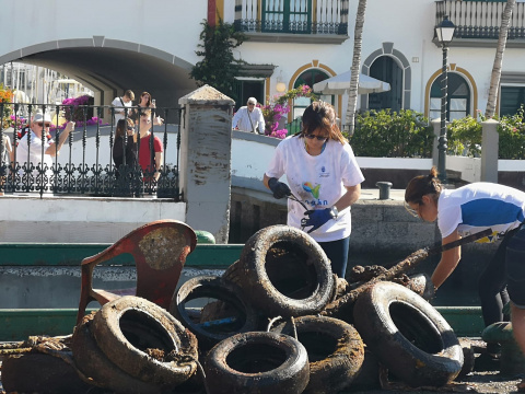 El Ayuntamiento de Mogán ha organizado una jornada de limpieza del fondo marino de la zona de los marineros en el Puerto de Mogán de la mano de cien voluntarios que han colaborado desde mar y tierra. Esta actuación, en la que se han extraído más de siete toneladas de residuos, tiene como finalidad liberar de residuos las aguas del municipio así como ayudar a conservar y preservar la biodiversidad marina en nuestras costas.