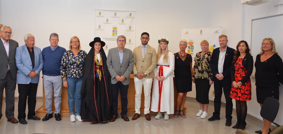 Sanna Sandgren, la conocida popularmente como la Lucía sueca, y Natalia Hernández Ojeda, reina de las fiestas de Santa Lucía de Tirajana, rindieron este lunes nueva visita a las autoridades municipales de San Bartolomé de Tirajana, justo cuando se cumplen 55 años desde que se iniciaran estas relaciones entre el municipio sueco de Lulea y el Patronato Reina de la Luz. En las oficinas municipales de Maspalomas fueron recibidas por el alcalde Marco Aurelio Pérez Sánchez, acto en el que estuvo acompañado por la teniente de alcalde Elena Álamo y el concejal de Turismo, Ramón Suárez.