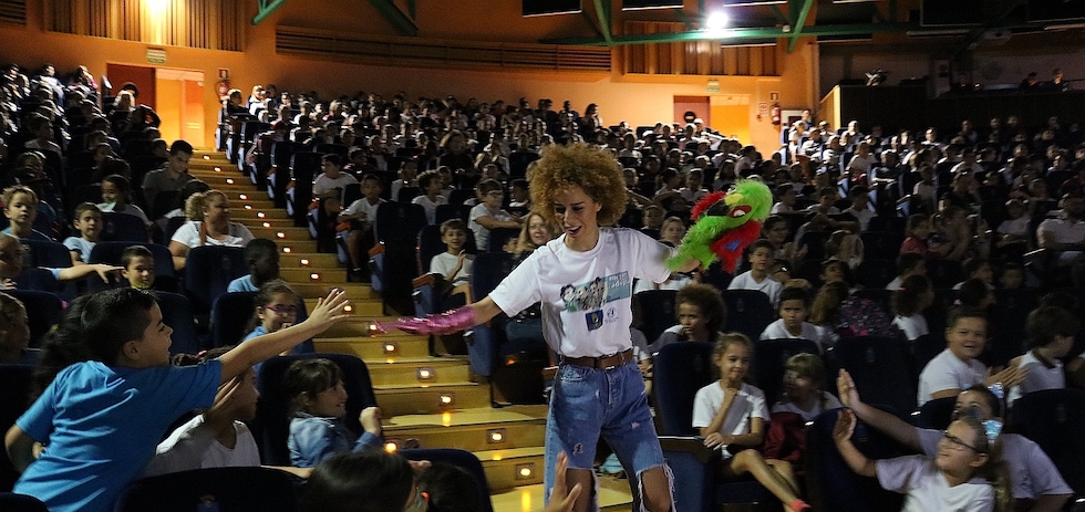 Mil escolares de entre los 8 y los 11 años de diferentes centros de Primaria del municipio han llenado este martes todo el aforo del Teatro Víctor Jara, mil butacas, para disfrutar del musical canario 'Rúnica, Mírame de frente 2', una obra para concienciar a los niños y niñas contra el abandono animal y la adopción y tenencia responsable.
