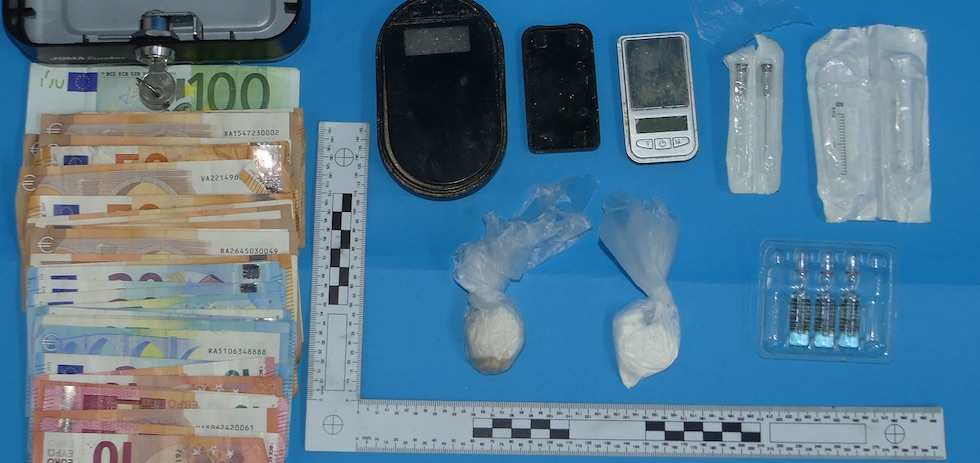 Además, en el interior del almacén del local se intervinieron dos básculas de precisión, dos envoltorios de mayor tamaño conteniendo sustancia estupefaciente, dinero en efectivo y útiles para el consumo y venta de droga.