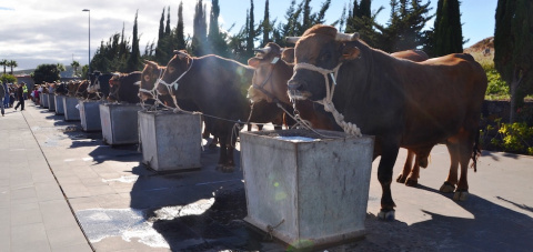 En el certamen ganadero, que se desarrolló en la Plaza del Teatro Auditorio Agüimes, participaron 25 ganaderos y ganaderas procedentes de diferentes municipios: Agüimes, Guía, Ingenio, Firgas y Valleseco que expusieron 55 bovinos,  50 ejemplares caprinos-ovinos, canes de razas autóctonas y otras especies como burros, aves, conejos y cochinos negros canarios.