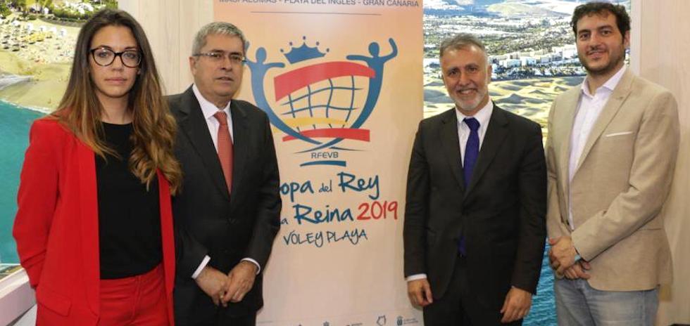 San Bartolomé de Tirajana acoge del 25 al 27 de abril la Copa del Rey y la Reina 2019 de Voley Playa, un nuevo evento nacional que se convoca por primera vez en el litoral de Gran Canaria, y cuyos detalles ofreció el alcalde Marco Aurelio Pérez en Madrid.