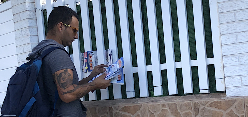 Los operarios municipales pasan gran parte de las mañanas recogiendo estos panfletos. Por ejemplo, hace unos días nos contaban cómo realizaron una batida intensa por la Avenida de la Unión Europea y la calle de Las Regalas, en la zona de San Agustín. Se lo mostramos en estas fotos.