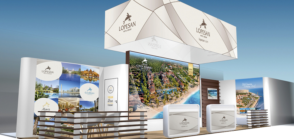 El stand albergará 4 zonas de reuniones, una de ellas cerrada. A su vez, dispondrá de un área de recepción, donde se ofrecerá información de la compañía, y una zona de espera, que contará con una pantalla de televisión donde se proyectarán vídeos de los hoteles de las nuevas marcas Corallium y Abora, y de las tradicionales Lopesan e Ifa. Esta última enseña alberga cuatro establecimientos en el mercado alemán, tres en el austríaco y uno en el dominicano.