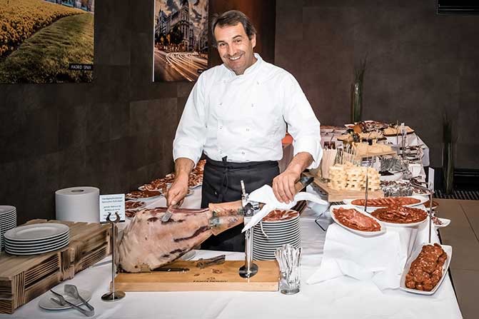Los asistentes además pudieron degustar magníficos platos y tapas de especialidades españolas, donde no faltaban los más típicos como el jamón ibérico de bellota, el salmorejo, la tortilla de patatas, la paella y por supuesto el cocido madrileño. La fiesta continuó con la música en vivo de “Joe’s Band” una banda que interpreta los mejores hits internacionales y que tras el éxito de la edición anterior repitió este año haciendo mover a los invitados al ritmo de la mejor música. Uno de los momentos estrella en lo que a cocina se refiere, fue el guiño a algo tan cañí como los churros, ya que a media noche se amenizó la fiesta con un resopón que incluía chocolate caliente con este dulce tan tradicional. Se pudo disfrutar también, y como viene siendo habitual, de una gran selección de bebidas y cócteles. Los asistentes pudieron bailar y disfrutar de la fiesta hasta bien entrada la madrugada.