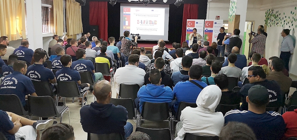 El proyecto educativo europeo Erasmus+ para el intercambio y las buenas prácticas educativas reúne desde este martes y hasta el viernes en el IES Santa Lucía a un grupo de 30 estudiantes y profesores llegados de centros educativos de Francia, Portugal, Eslovenia y Turquía para participar en el IV Encuentro Internacional E-WORLD -Better Electro World, dentro de la rama de Formación Profesional de Electricidad y Electrónica.