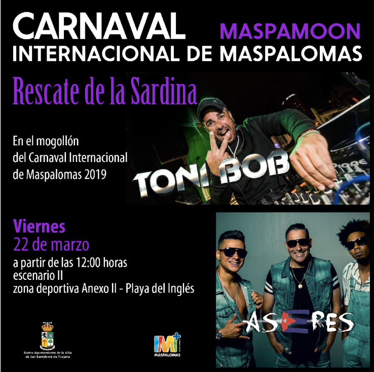 El tradicional Día del Turista se iniciará a las 12.00 horas con el Rescate de la Sardina, desde la Charca de Maspalomas hasta llegar al Centro Comercial Anexo II de Playa del Inglés, donde habrá ocio, diversión y música en el Escenario II, con el grupo Aseres y el Dj Toni Bob.