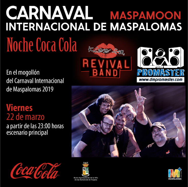 Al finalizar, comenzará el mogollón Noche Coca Cola en el escenario del Carnaval con el grupo Kiss FM Revival Band, y el deejay Promaster.