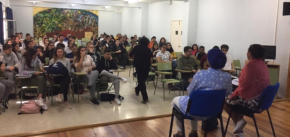 Catorce mujeres participan en esta tercera edición del foro que se celebra hasta el jueves en horario de tarde y que tiene la entrada abierta al público y sirve de punto de conexión con las luchas de distintas mujeres de algunas zonas de África (Guinea Ecuatorial, Mauritania y Marruecos), de Latinoamérica (Colombia, Chile y República Dominicana) y Canarias. Esta mañana la feminista marroquí Betty Lachgar, del MALI (Movimiento Alternativo para Libertades Individuales) dio una charla en el IES José Zerpa dentro del EducaESPAL.