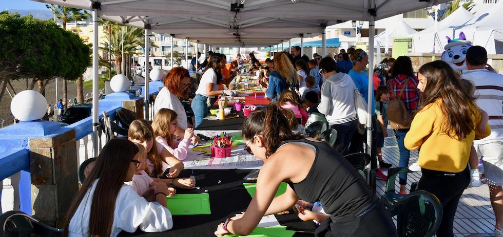 La plaza de las Marañuelas de Arguineguón acogió la novena edición de la Feria del Libro del municipio moganero. El evento, incluido en el programa del Ayuntamiento de Mogán para conmemorar el Día Internacional del Libro, reunió a un gran número de asistentes entre los diferentes stands, exposiciones y talleres.