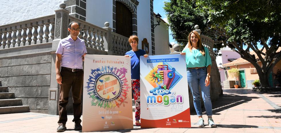 La alcaldesa de Mogán, Onalia Bueno, junto a la concejala de Cultura, Grimanesa Pérez, y el concejal de Festejos, Ernesto Hernández, han presentado este jueves, 9 de mayo, el programa de 'Expo Mogán' que llenará las calles del casco histórico del municipio de exposiciones, artesanía y conciertos el 1 y 2 de junio. También se ha dado a conocer el de las Fiestas Patronales de San Antonio El Chico 2019 que se celebrarán del 6 al 16 de junio aunando tradición, cultura y ocio.