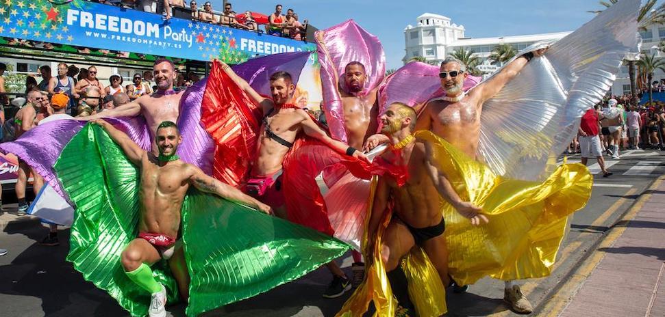 La zona turística de Playa del Inglés se convirtió este sábado en una marea de los colores del arcoíris, para celebrar el multitudinario desfile de carrozas. Una cita a la que asistieron más de 100.000 personas, que pudieron disfrutar de su libertad en uno de los municipios más tolerantes de toda Europa.