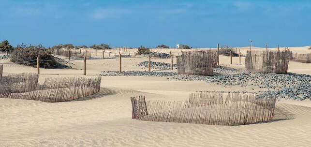 Así, las dunas se han ido retirando de la costa en las últimas décadas hasta situarse a 210 metros de la línea del mar, pero antiguamente estaban a apenas 70 metros, donde el Cabildo ha plantado balancones protegidos por captadores de arena -zocos de mimbre-, para que formen montículos que no son otra cosa que dunas en estado embrionario que ya superan el medio metro.
