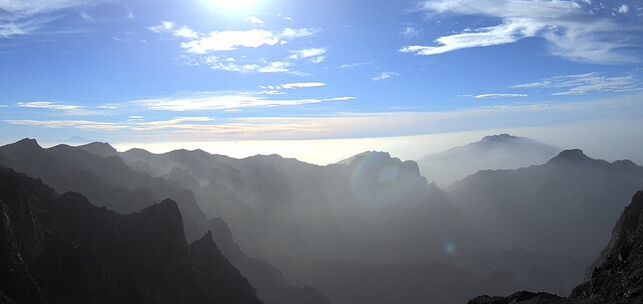 En medianías, viento del nordeste más intenso en la primera mitad del día, y en cumbres, viento flojo variable. Predominio de las brisas en costas del norte y sur.