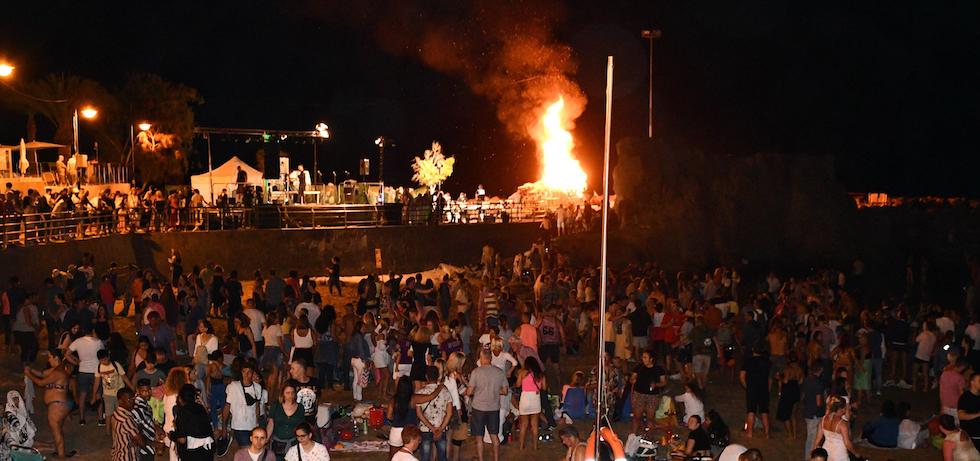 Al anochecer residentes y visitantes comenzaron a congregarse en los alrededores y la propia playa de Mogán en lo que sería una noche llena de celebraciones para dar la bienvenida a un verano cargado de positividad. Las actividades, organizadas por el Ayuntamiento de Mogán, iniciaron con el popular asadero de piñas.