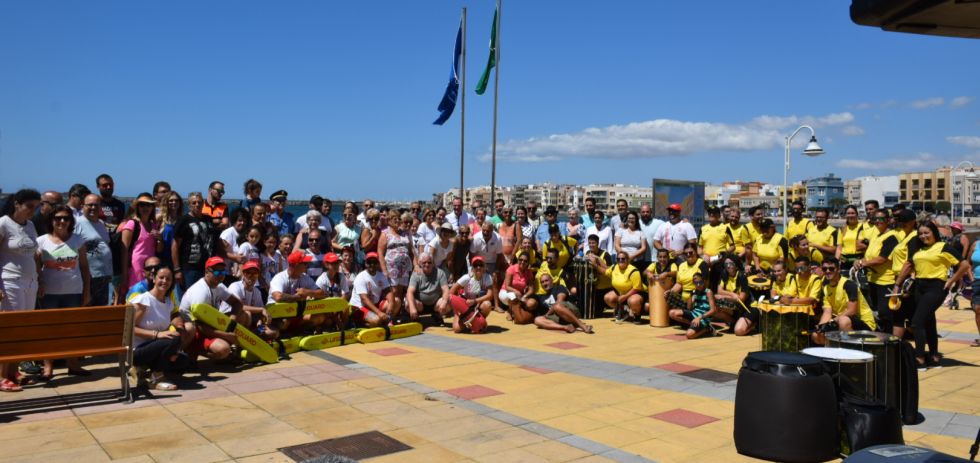 La Avenida de Los Pescadores de Arinaga ha izado este fin de semana la bandera azul, un acto en el que participó la batucada “Samba Isleña”.