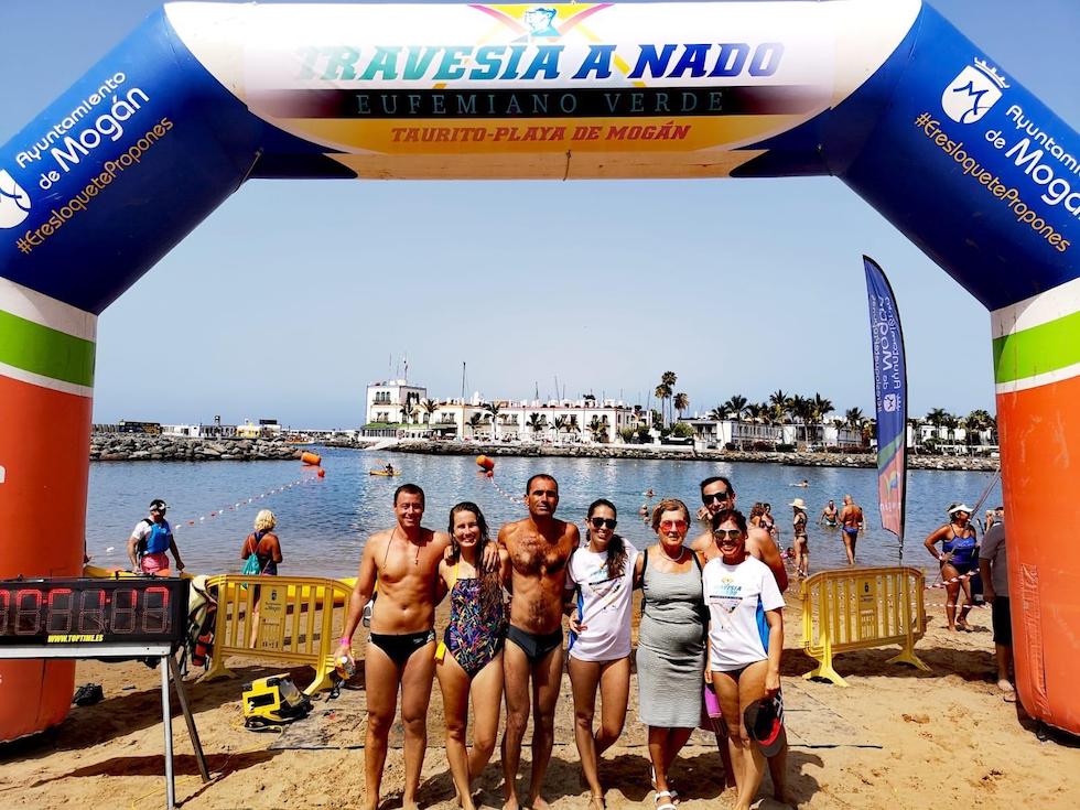 “Él ha nadado con nosotros”, pronunció su hija Astrid tras llegar al arco de meta portando un pequeño frasco con las cenizas de su padre. Junto a ella, otros dos hermanos y su pareja también realizaron la travesía para honrar la memoria de Eufemiano Verde que no faltaba a su cita anual con la grata experiencia que supone unir a nado estos dos puntos de la costa moganera.