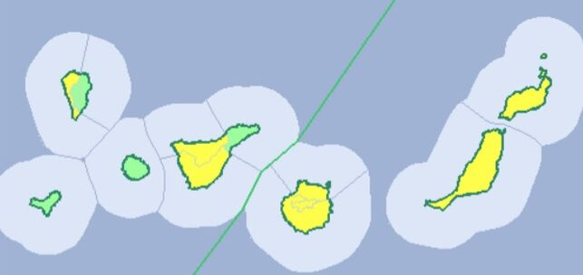 Este aviso amarillo se extenderá el sábado a los municipios de Agaete, en Gran Canaria; Guía de Isora, La Orotava y Vilaflor, en Tenerife; y Santa Cruz de La Palma, Breña Alta, Breña Baja, Fuencaliente, Los Llanos de Aridane, Tazacorte y Villa de Mazo, en La Palma.