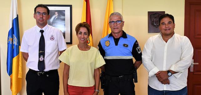 En base a ello, este jueves, Bueno y Navarro han hecho entrega al jefe accidental de la Policía Local, José Luis Segura, y al jefe de la Agrupación de Voluntarios Protección Civil del municipio, Wenceslao Hernández, el distintivo y el diploma para ambos cuerpos. La alcaldesa ha asegurado que “Mogán siempre ha estado ahí cada vez que se activan los servicios por parte del 112, aportando toda la solidaridad y los equipos humanos y técnicos en aquellos municipios donde hagan falta” y ha agradecido al Parlamento de Canarias este reconocimiento “a todos los grancanarios que participaron activamente para acabar con los incendios”.