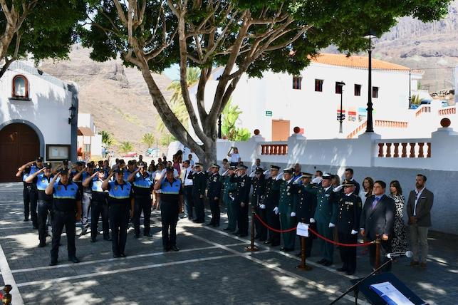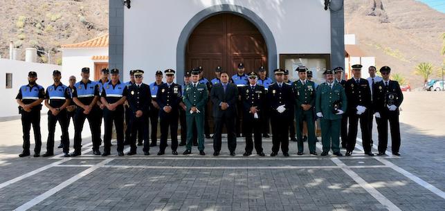 Después del acto religioso dio comienzo en la plaza de este barrio moganero la entrega de distinciones por parte del acalde accidental, Mencey Navarro, y el  subinspector jefe de la Policía Local de Mogán, Jorge Alemán. Así, en representación de sus respectivos Cuerpos, los reconocimientos por la constante cooperación en materia de seguridad ciudadana en el municipio fueron recibidos por el jefe de la Comisaría  de la Policía Nacional de Maspalomas, Eduardo Manuel García, el teniente de la Guardia Civil de Mogán, Juan Manuel Rodríguez, y el jefe de la Agrupación de Voluntarios de Protección Civil de Mogán, Wensceslao Hernández.